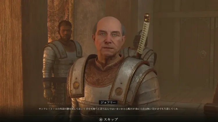 ジョフリーに話しかけると、サンクレ・トールの外扉の鍵を入手可能。