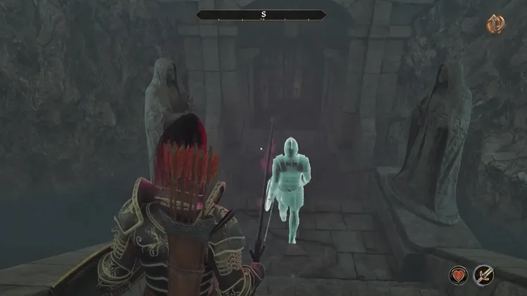 しばらく亡霊についていく。レマン皇帝たちの墓の奥に進むとクエストが進行し、目的地マーカーが表示される。