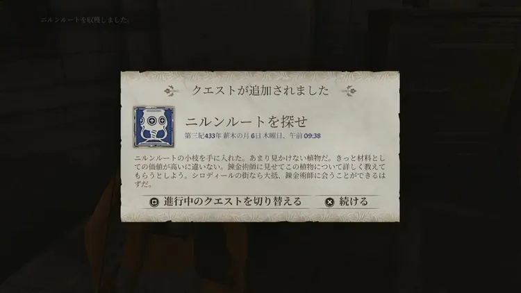 監視隊長の私室にあるニルンルートを盗むと、そのままクエスト「ニルンルートを探せ」が発生する。なるべく回収しておくようにしよう。