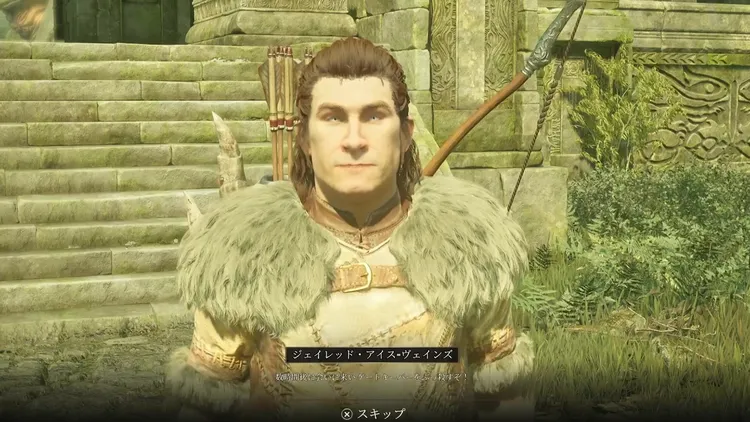 待機機能で5時間ほど時間を進めて再度ジェイレッドに話しかけると、ゲートキーパーの骨の矢を入手できる。