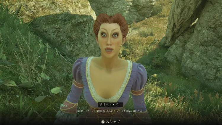 ナネット・ドンの好感度を70まで上げてゲートキーパーについて尋ねると、レルミナの涙が弱点であることを教えてくれる。