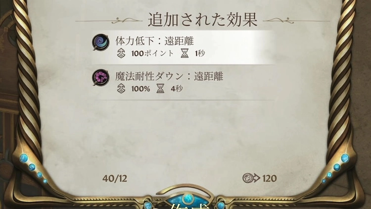 | 魔法耐性ダウン | 遠距離 | 100 | 4 |