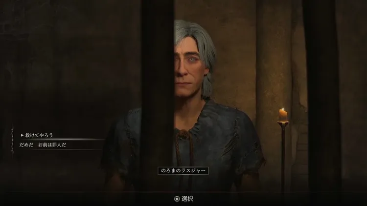 地下牢へ戻り看守と会話、「囚人の給仕係だ 扉を開けてくれ」を選択することで、看守が地下牢の扉を開けてくれる。