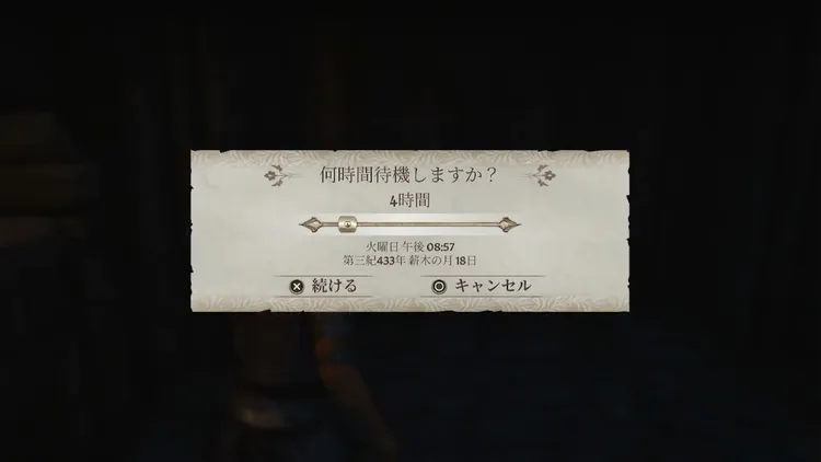 中庭まで出ることができたら、その場で深夜まで待機しよう。門の外にいる衛兵を退散させることができる。