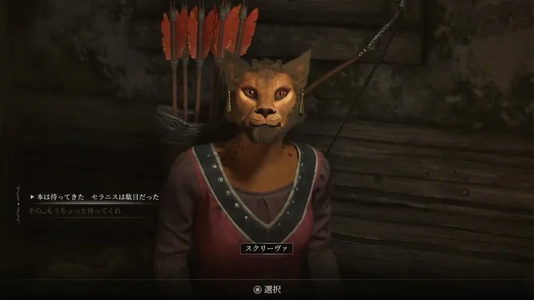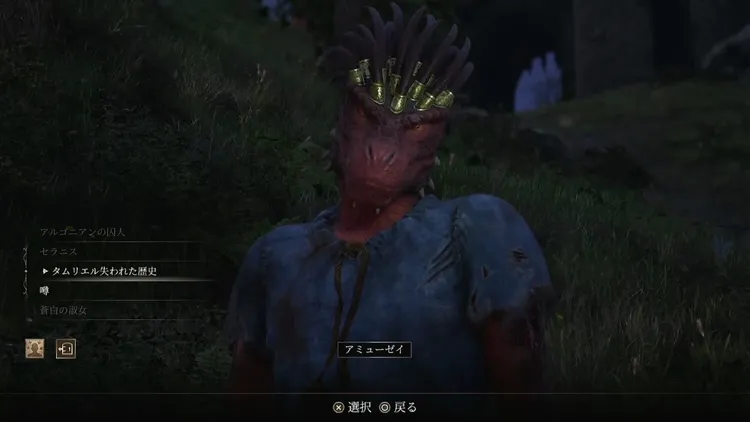 スキングラードを出て目的地まで移動すると、アミューゼイとの会話が発生。本の場所に関する情報をもらえる。