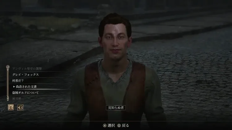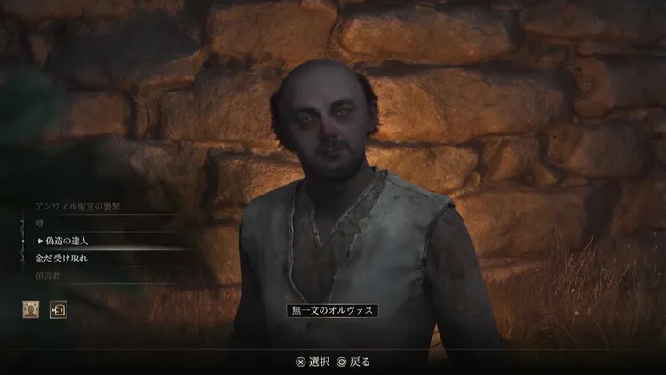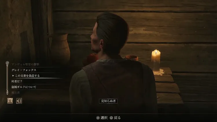 廃屋へ向かい、見知らぬ者と話して「この文書を偽造する」を選択しよう。