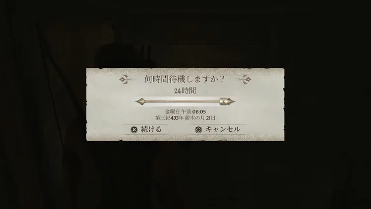 偽造文書は24時間後に完成する。24時間待機して再び見知らぬ者に話しかけて「偽造された文書」を選択、謝礼の500ゴールドを支払い偽造文書を受け取ろう。