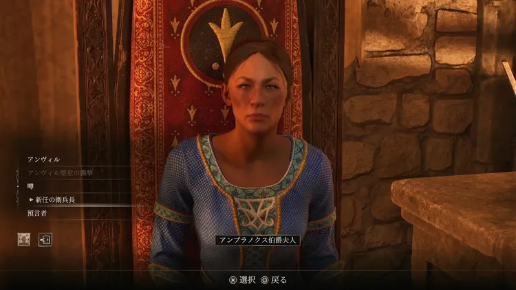 アンブラノクス伯爵夫人と会話し「新任の衛兵長」を選択、偽造文書を渡すことで移動命令が入手できる。