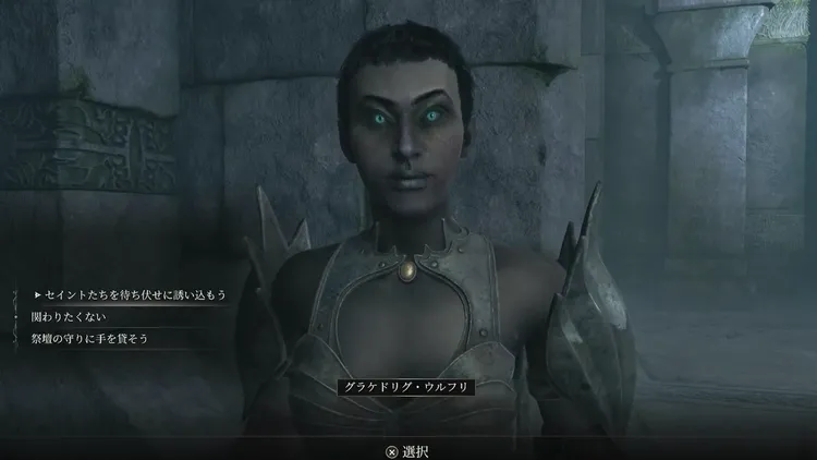 大灯台に点火した後、協力した陣営の司祭に話しかけると報酬の防具を入手できる。