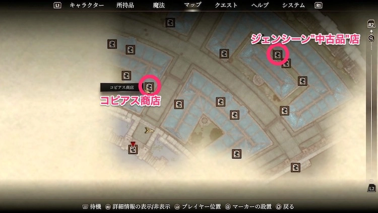 ジェンシーン中古店は、帝都-商業地区にファストトラベル後、左方向の区画に存在する商店だ。