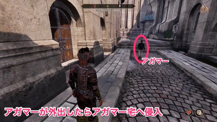 アガマーは16時頃に外出するので、16時まで待機してアガマーが家を出たのを確認したら、鍵開けで侵入しよう。