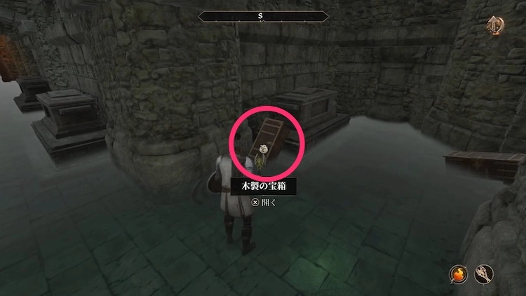 影滅のワインが入った宝箱は、複数の浸水箇所を超えた先、亡霊がいる区画に存在する。