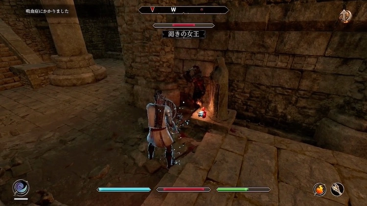 カルマラ砦には道中に吸血鬼がいる。最奥ではボス「渇きの女王」と戦うことになる。