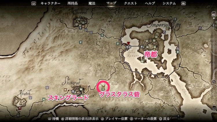 ヴラスタラス砦は、スキングラードの東にある砦だ。スキングラードから、帝都へ続く道を辿りながら探すと分かりやすい。