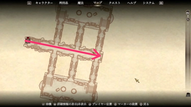 砦内に入ったら、ひたすら直進し突き当たりを左折。扉を開けて、突き当たりまで直進するだけで辿り着ける。