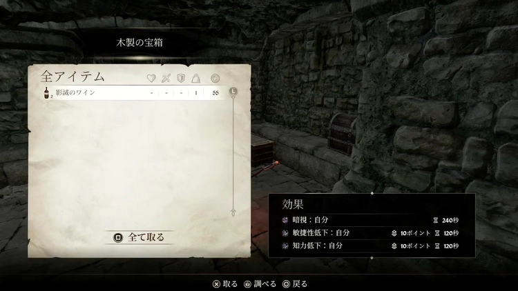- 影滅のワインを6本集める・特定の砦の宝箱に入っている
