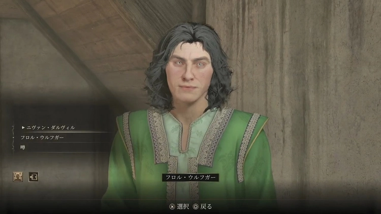 村人と話して選択肢「ニヴァン・ダルヴィル」か「フロル・ウルフガー」を選ぶ