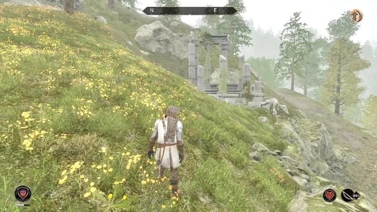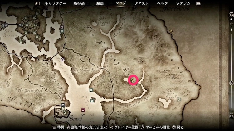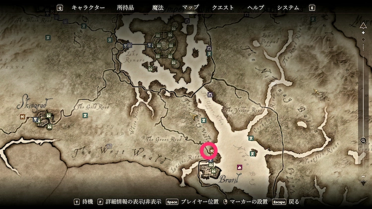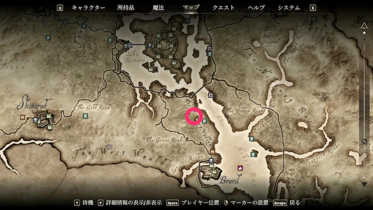 そこそこ距離はあるが、ブラヴィルとレヤウィンをつなぐ道沿いにあるため、どちらから向かっても問題ない。