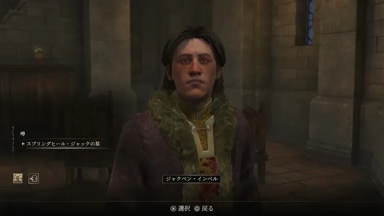 物乞いの情報をもとにジャクベン・インベルの家へ入り、中にいるジャクベン・インベルと会話して「スプリングヒール・ジャックの墓」を選択、「インベル家地下墓地の鍵」をもらおう。