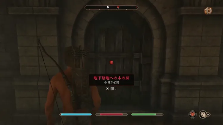 鍵を入手したら、家の地下にある地下墓地の木の扉から地下墓地に入ろう。