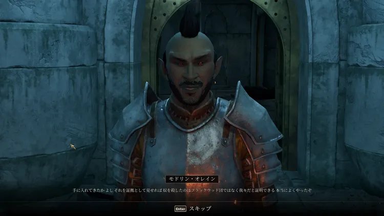 戦士ギルドにいるモドリン・オレインと任務の話をすると、内密にしたい任務があると聞かされる。