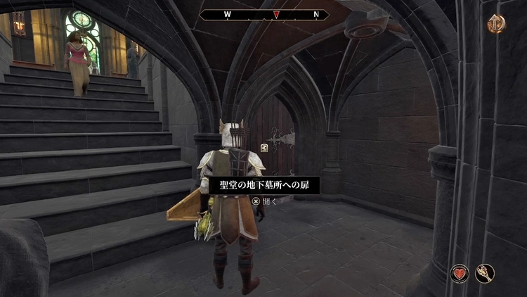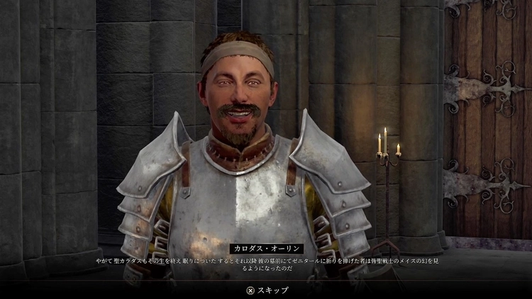 聖堂へ入ると、カロダス・オーリンが話しかけてくる。カロダスと会話して、メイスの話を聞こう。