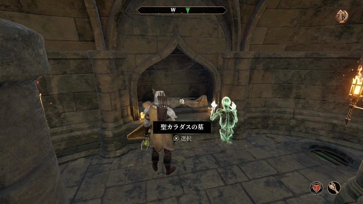 自動的に聖カラダスの墓前に転送されるので、装備を整えてから1Fへ戻ろう。