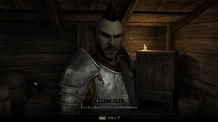 オレインと会話し、ブラックウッド団のアジトに攻め込む準備をする。
