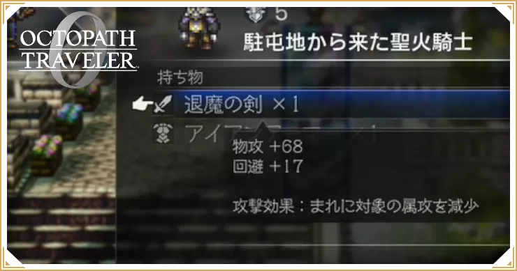 序盤は物理攻撃を中心に戦うこととなるため、ボス戦前などに使用すればボスを倒すのが多少楽になる。