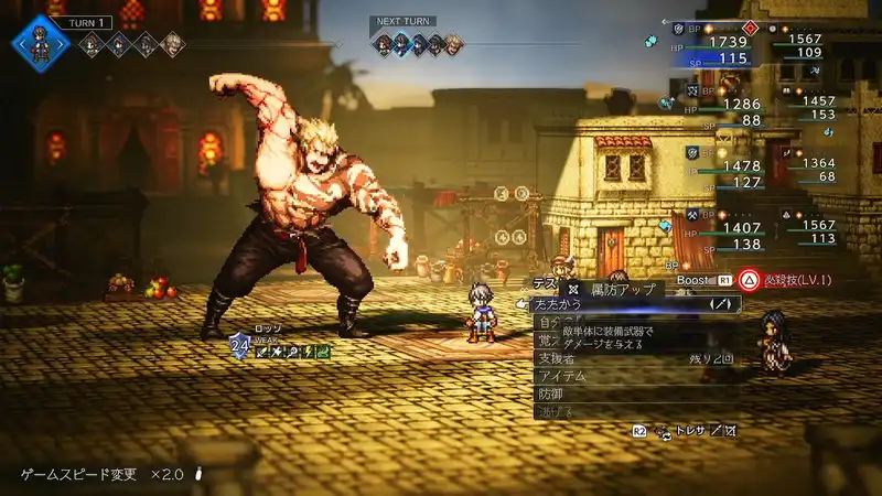 ピエロを連れて酒場に入ると、イベント後にロッソとの戦闘が発生する。ロッソは単独で出現するが、高い物理攻撃による連撃や範囲攻撃を仕掛けてくるため、物攻ダウンと物防アップを継続的に付与してダメージを軽減しよう。