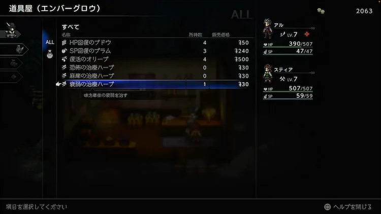 また、ユルゲンは毒の他にも衰弱の状態異常を付与してくるため、衰弱治療のハーブをエンバーグロウの道具屋で購入しておこう。