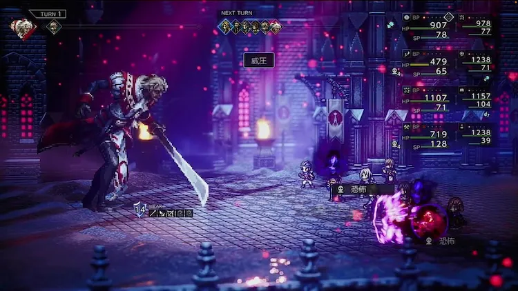 緋翼兵団長タイタスは、恐怖の状態異常を付与してくる。恐怖の状態異常はBPが使用できなくなり、ターン終了時のBP回復もしなくなる。