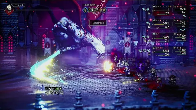 「恐解の剣」は、対象が恐怖状態だと強制的にHPを1にする技のため、次の攻撃までに対策しなければ、対象のキャラは高確率で倒されてしまう。「恐解の剣」を使われたらすぐに回復し、体勢を立て直すようにしよう。