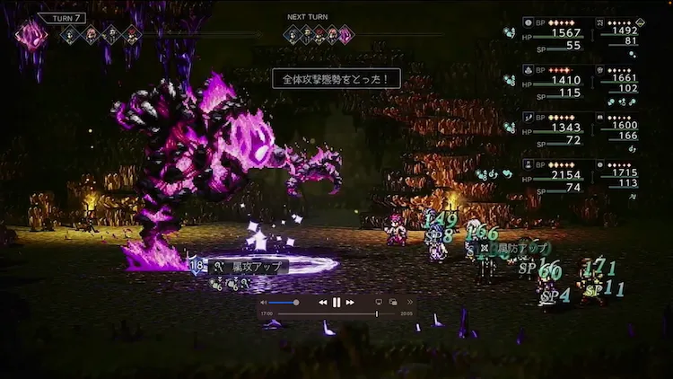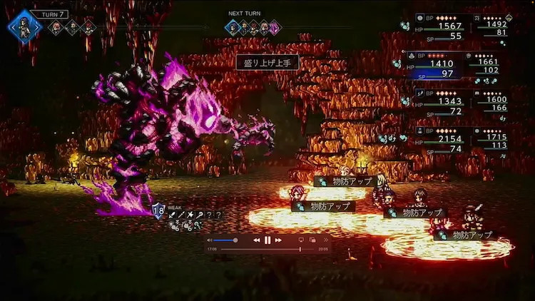 一方でブレイクから復帰すると今度は全体攻撃態勢になり、全体対象の属性攻撃のみを使用するようになる。この時は全体のHP回復を毎ターン欠かさず行い、味方の負担を減らしていこう。