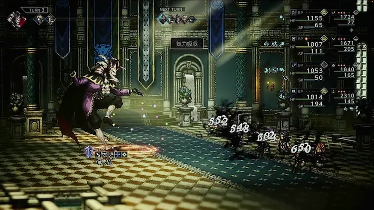 道化師ゴンスカは、戦闘中にで「気力吸収」のスキルで前衛のBPを-2する効果がある全体攻撃を行なってくる。