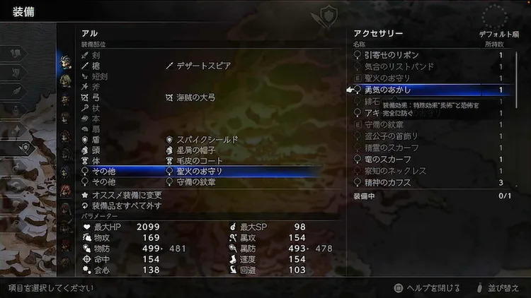 パーディス三世戦が始まる前に、王女の部屋でアクセサリー「勇気のあかし」をヒーラーに装備しておくことで、パーディス三世が付与してくる特殊効果「畏怖」を無効化することができるため必ず入手しておこう。