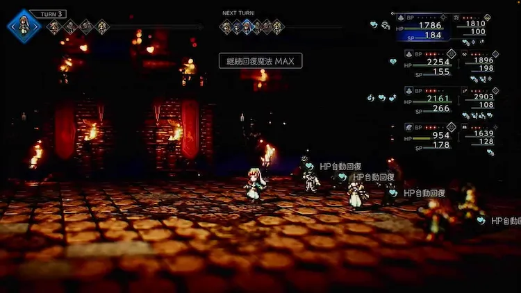 そのため、通常のボス戦でも必須級のHP自動回復を、レモーネ戦では最初のターンから3ターン以内に前衛にかけるようにしよう。