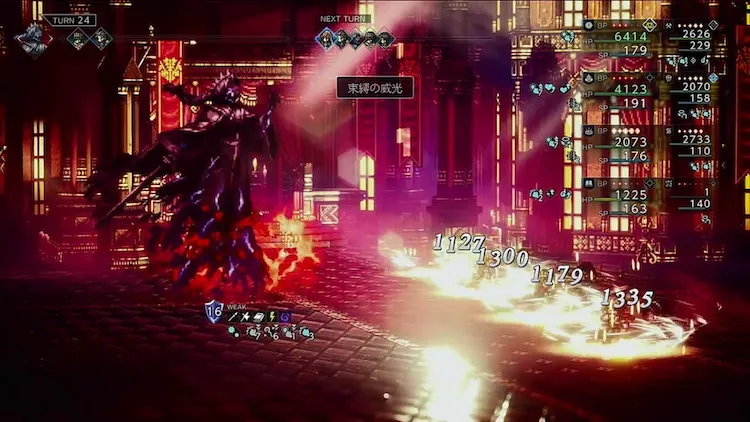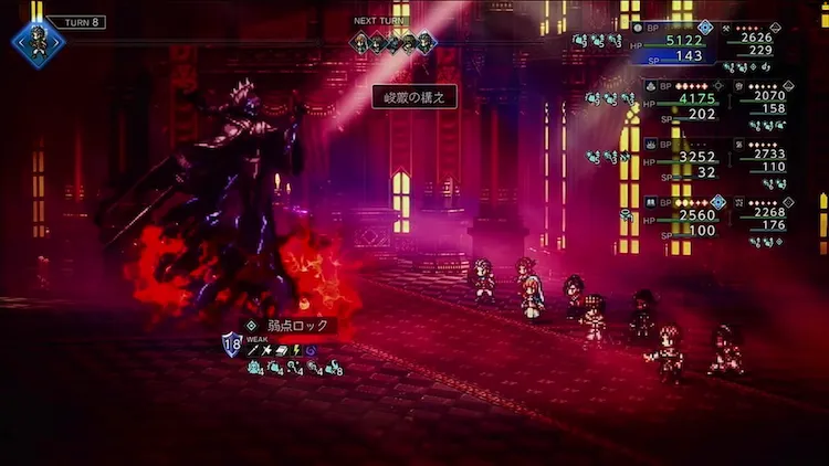 亡者エリカはブレイク復帰ターンの終了時「峻厳の構え」を使用し、雷・闇弱点をロックする行動を行うことがある。