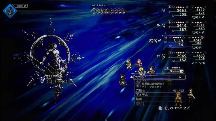 バルジェロ | ・先駆けでボスよりも先に行動できる ・ターン内の行動が1回目の時に高火力を出せるアビリティを覚える ・敵をブレイクするとBPが3回復する |