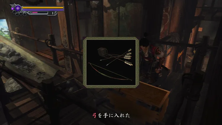 2階に登ったところで武器「弓」を入手可能。