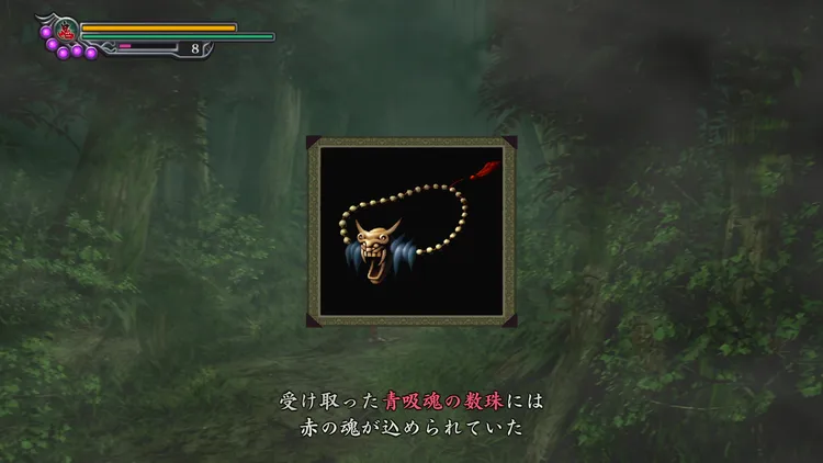 アイテム「青吸魂の数珠」を入手、少し進んだ先に宝箱からキーアイテム「赤幻夢クサビ」を入手。