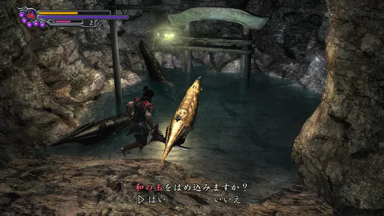 - 岩窟で和の玉を使い、鬼ヶ島へ向かう