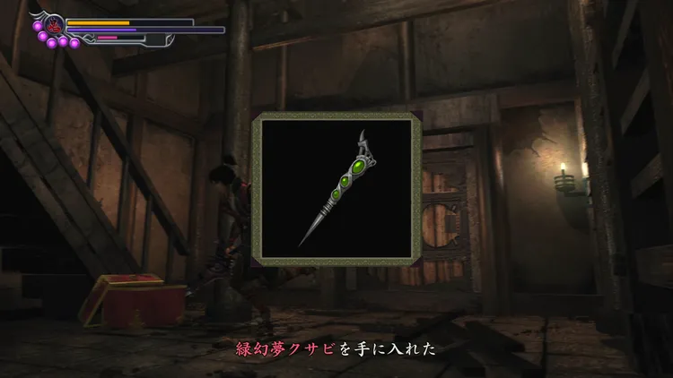 クサビを入手したら次は幻夢空間に行ける光の柱を探すことになるのだが、クサビが取れる場所の左隣(十兵衛が部屋から出て)の部屋に光の柱が現れる。