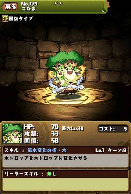 「こだま」は、スキル「流水変化の術・木」で水ドロップを木ドロップに変化させることができる便利なモンスターだ!