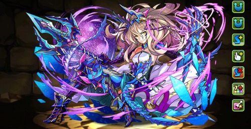 | 【スキル】 全ドロップを水、闇、回復ドロップに変化。 自分以外の味方スキルが1ターン溜まる。 (15→9) 【リーダースキル】 |
