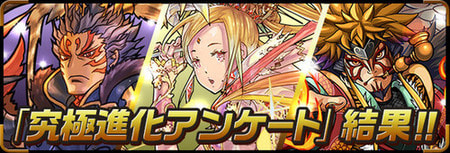 以前行われた究極進化アンケートの結果が発表されました! 選ばれたモンスターは下記のとおりです!
