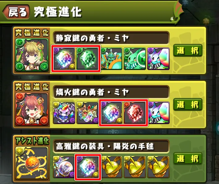 「聖なる鍵」のおすすめ進化先と所持数目安