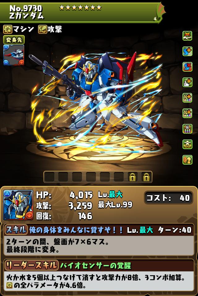 パズドラのZガンダムの評価と潜在覚醒おすすめを紹介しています。パズドラのZガンダムのスキルや覚醒はもちろん、ステータスや入手方法なども記載していますので、Zガンダム(ガンダムコラボ)は強いかの参考にご覧ください。