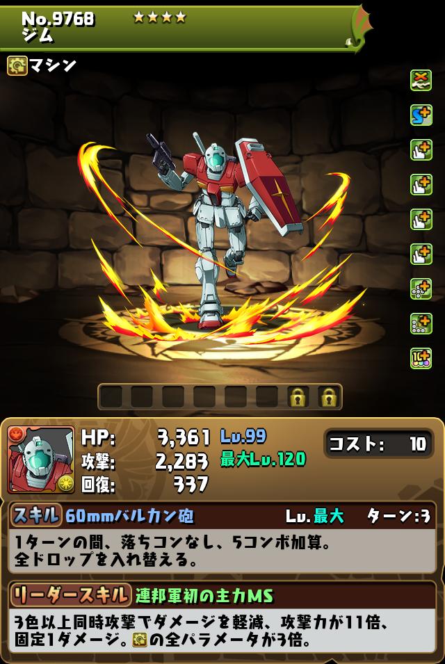 パズドラのジムの評価と潜在覚醒おすすめを紹介しています。パズドラのジムのスキルや覚醒はもちろん、ステータスや入手方法なども記載していますので、ジム(ガンダムコラボ)は強いかの参考にご覧ください。