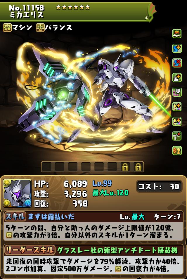| 光回復の同時攻撃でダメージを79%軽減、攻撃力が40倍、2コンボ加算、固定500万ダメージ、マシンタイプの回復力が4倍。 | |||